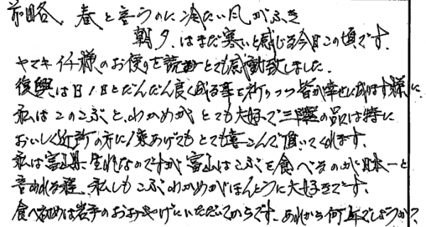 ヤマキイチ様のお便りを読みとても感動致しました。