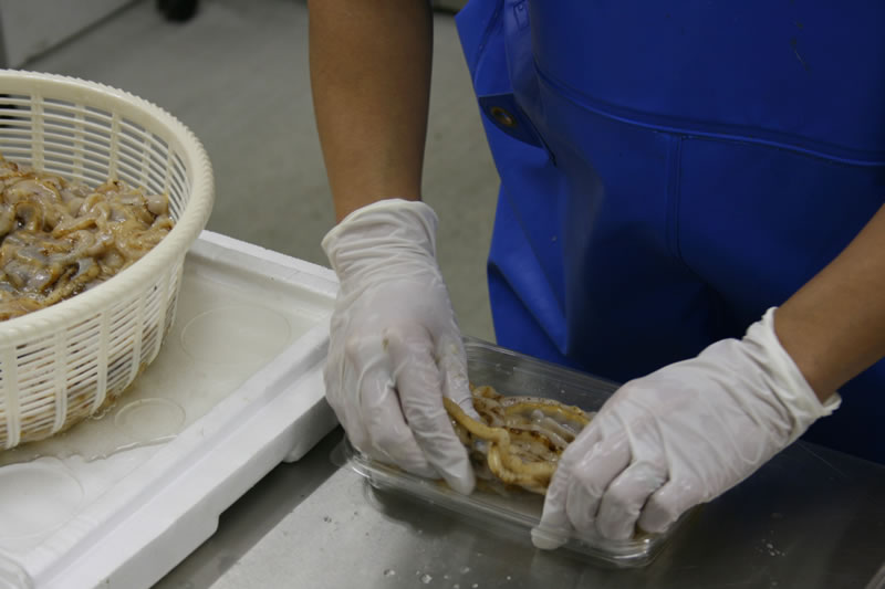 そこでホタテのヒモのみを入れる入れ物を探し、貝柱にヒモの匂いが移らないように改良いたしました。