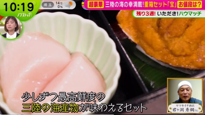12月10日(木)に放送された、フジテレビさんの情報番組『ノンストップ!』の人気コーナー『いただき!ハウマッチ』で、重箱セット「宝」が登場しました!