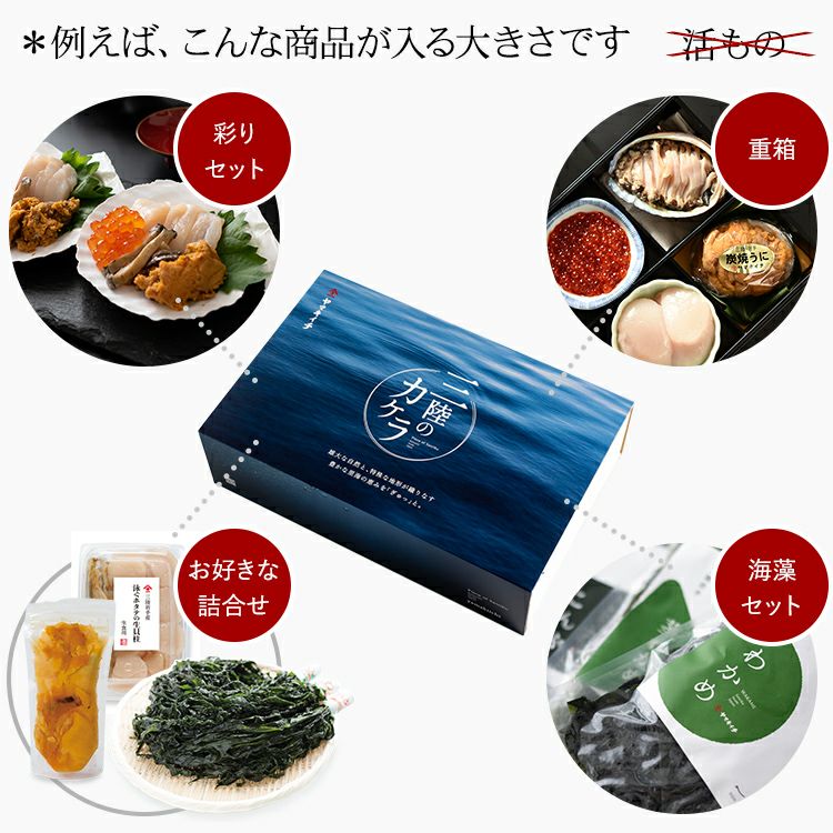 他の画像を見る 「三陸のカケラ」ギフト化粧箱(小)スリーブ 販売価格 ¥ 220 税込 彩りセット、重箱、海藻セット、その他単品の詰め合わせ に対応しています。(1サイズのみ) 商品と一緒にご購入ください。 カートに入れる お気に入りに登録する