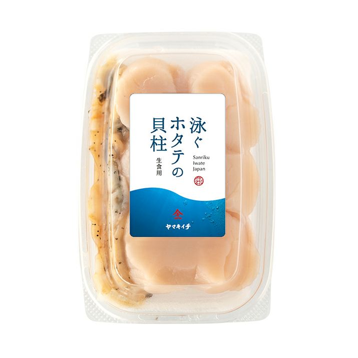 当店が自信を持ってお届けする、泳ぐほど鮮度の高い「ヤマキイチの泳ぐホタテ」。浜値日本一の岩手のホタテの中でも最も大きく品質の高いホタテを作り出している浜のホタテを毎年最高値で仕入れています。 お客様に本当に美味しい本物のホタテを食べていただきたいという創業以来のヤマキイチのこだわりが込められた至極のホタテ。それが「ヤマキイチの泳ぐホタテ」です。