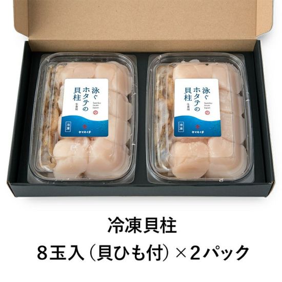 【冷凍】泳ぐホタテの貝柱(ひも付き)8玉入り 2パック入り