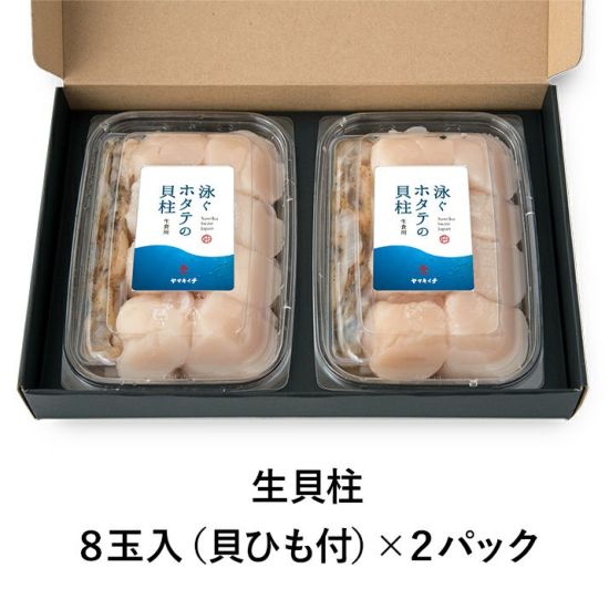 泳ぐホタテの貝柱〈生〉ひも付き(8玉入り) 2パック入り