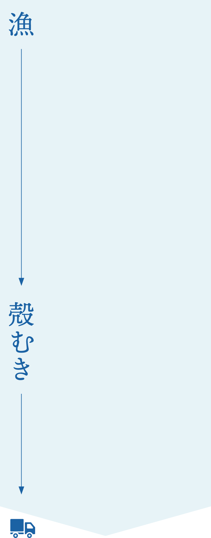 手作業で一つ一つ取り出した身からワタが外されて市場へ出回る姿となります。素早く作業し、品質基準をクリアしたものを選別していきます。