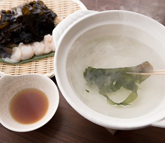 一般的に「わかめ」というと長期保存のため湯通し塩蔵のものが多く売られていますが、1月から3月の間のこの時季だけ、海から採取したままの「生わかめ」が楽しめます。見慣れないこの茶色は生わかめ本来の色。4月にはもう生では食べられないほど大きくなってしまうので、まさに今が食べ時です。かつては地元でしか流通していなかった貴重品です!3月中旬までの期間限定商品!
