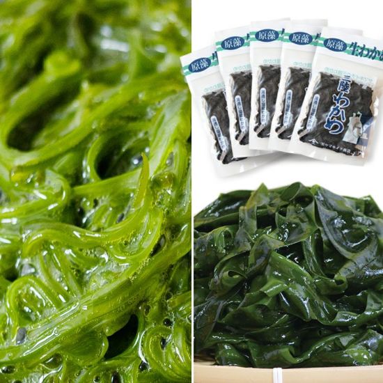 春先だけにしか食べられない生のめかぶと製造したばかりの柔らかな塩蔵わかめのセットです。とろみたっぷりの生めかぶと歯ごたえがあるのに柔らかい塩蔵わかめ。春の海の香りを存分に感じられます。4月下旬までの限定商品です。