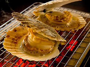 ホタテを丸ごとどうぞ。貝殻付ならではの食べ方です。