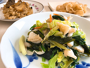貝ひもと生わかめの和え物