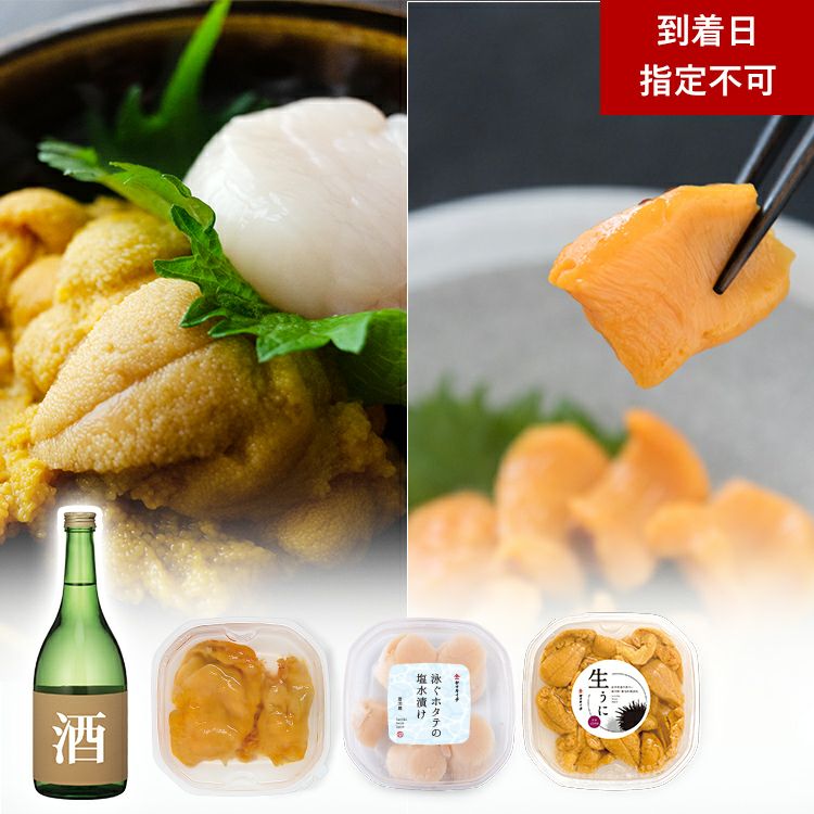 夏に旬を迎えるうにとほたて、さらに「特上いくら」を加えて豪華セットにしました。目安はたっぷり3〜4人前です。