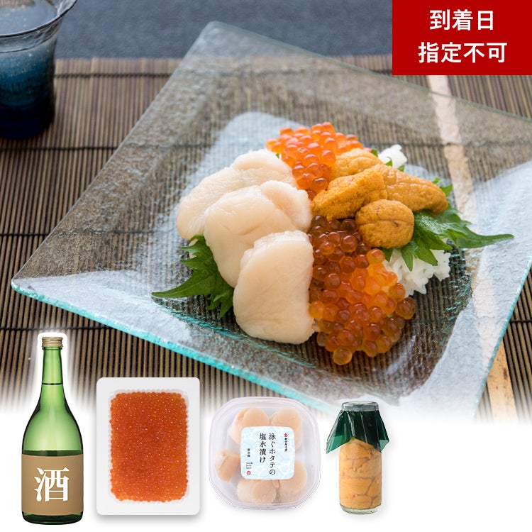 豪華な3色丼をお楽しみいただける、夏だけ限定セット。ご贈答にもどうぞ。 うに&いくら&ホタテ 3色セット(期間限定)