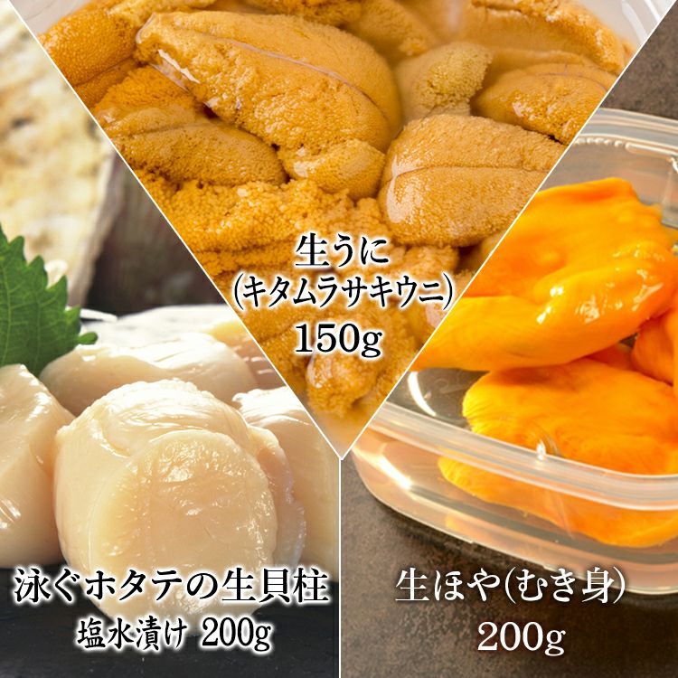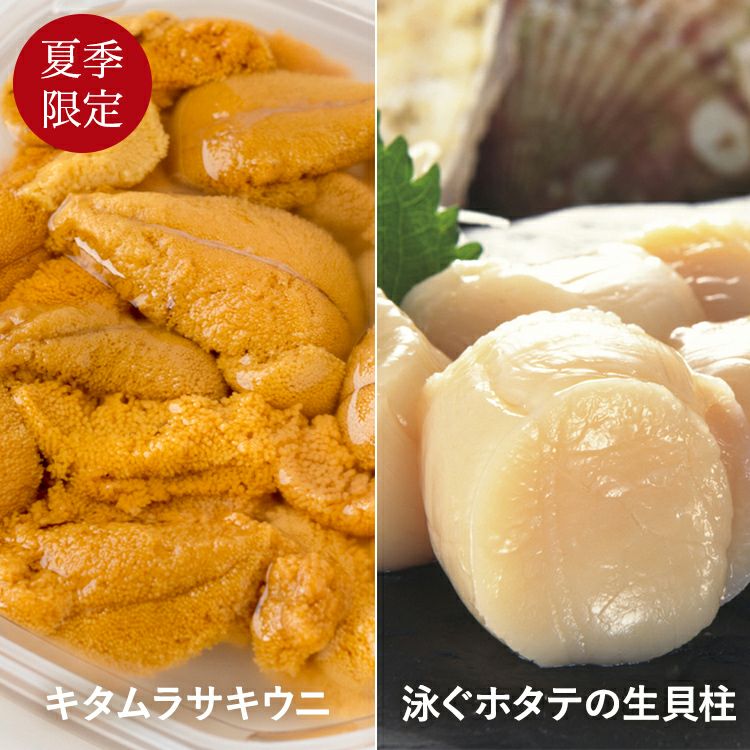 他の画像を見る 期間限定 配達日指定不可 冷蔵 クール便でお届け 夏が旬の生うにと、生のホタテ。 生うにと泳ぐホタテの生貝柱セット1(期間限定) 販売価格 ¥ 4,968 税込 生貝柱100gと生うに80g。丼にして約1~2人前です。贈り物にもどうぞ。 在庫なし 販売を終了しました。 詳細を見る お気に入りに登録する