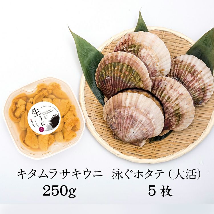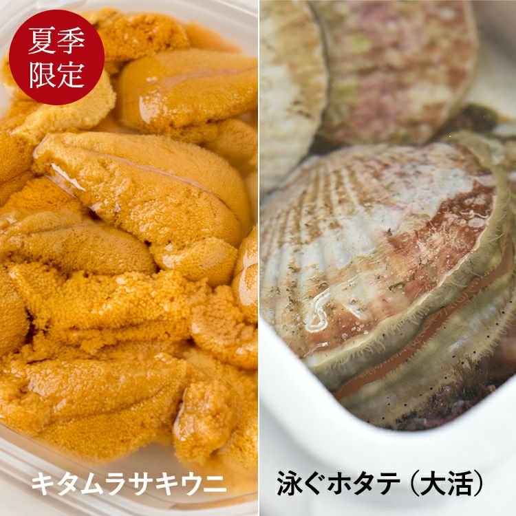 他の画像を見る 期間限定 配達日指定不可 冷蔵 クール便でお届け 夏が旬の生うにと、生きたホタテ。特別な味わいです。 泳ぐホタテセット6(大活ホタテ5枚・生うに250g)(期間限定) 販売価格 ¥ 12,420 税込 夏限定の生うにと活ホタテのセット。甘みも最高のシャキシャキな活ホタテと生うに本来の味をご堪能いただけます。 在庫なし 詳細を見る お気に入りに登録する