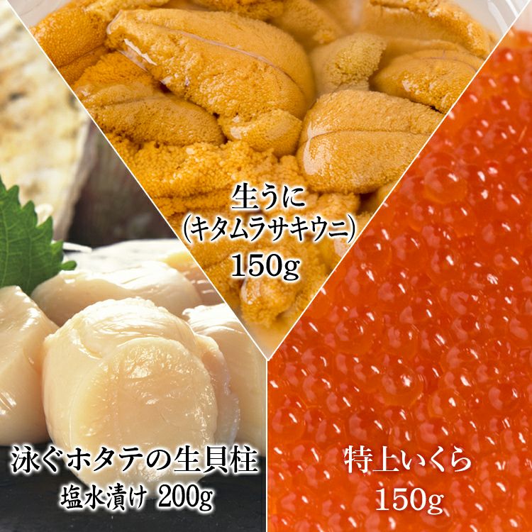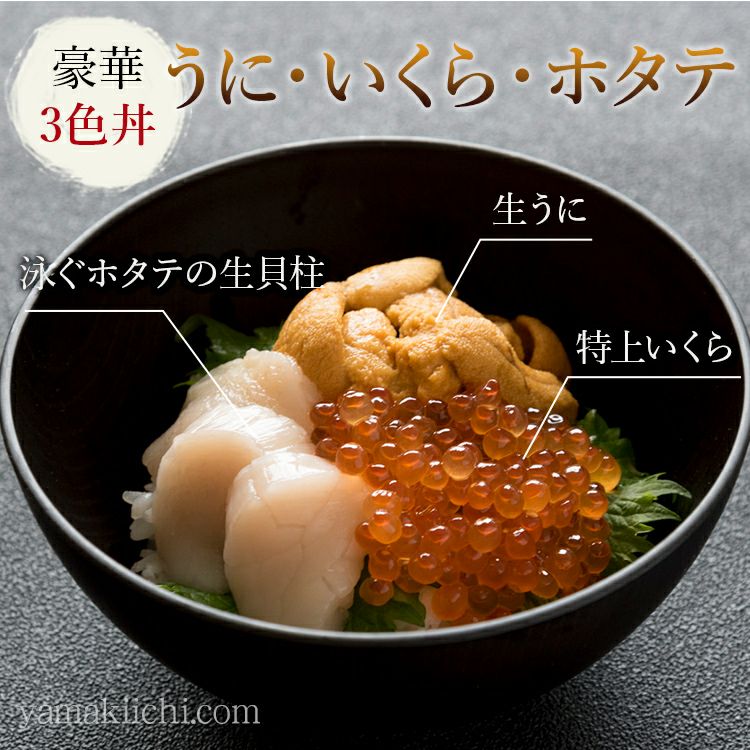 他の画像を見る 期間限定 配達日指定不可 冷蔵 クール便でお届け 豪華な3色丼をお楽しみいただける、夏だけ限定セット。ご贈答にもどうぞ。 うに&いくら&ホタテ 3色セット(期間限定) 販売価格 ¥ 13,176 税込 〜 販売価格 ¥ 税込 夏に旬を迎えるうにとほたて、さらに「特上いくら」を加えて豪華セットにしました。目安はたっぷり3〜4人前です。 在庫なし 販売を終了しました。 詳細を見る お気に入りに登録する